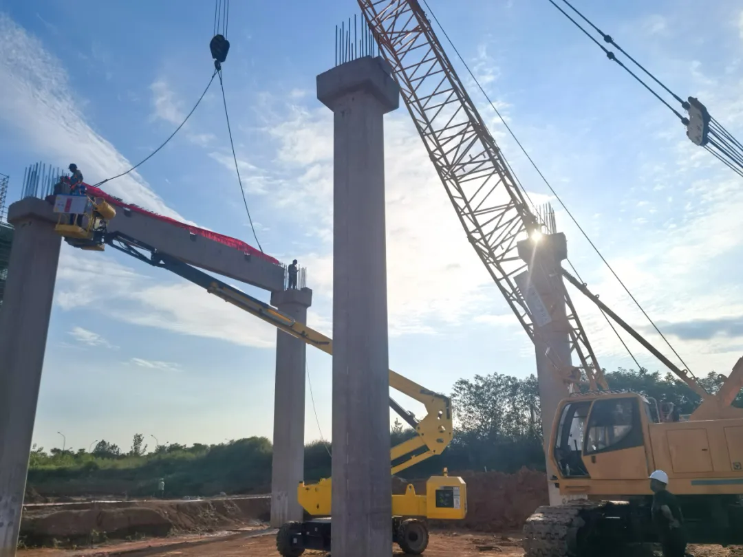 項目直擊丨航發(fā)智慧物流園018號項目首片預制梁精準吊裝到位